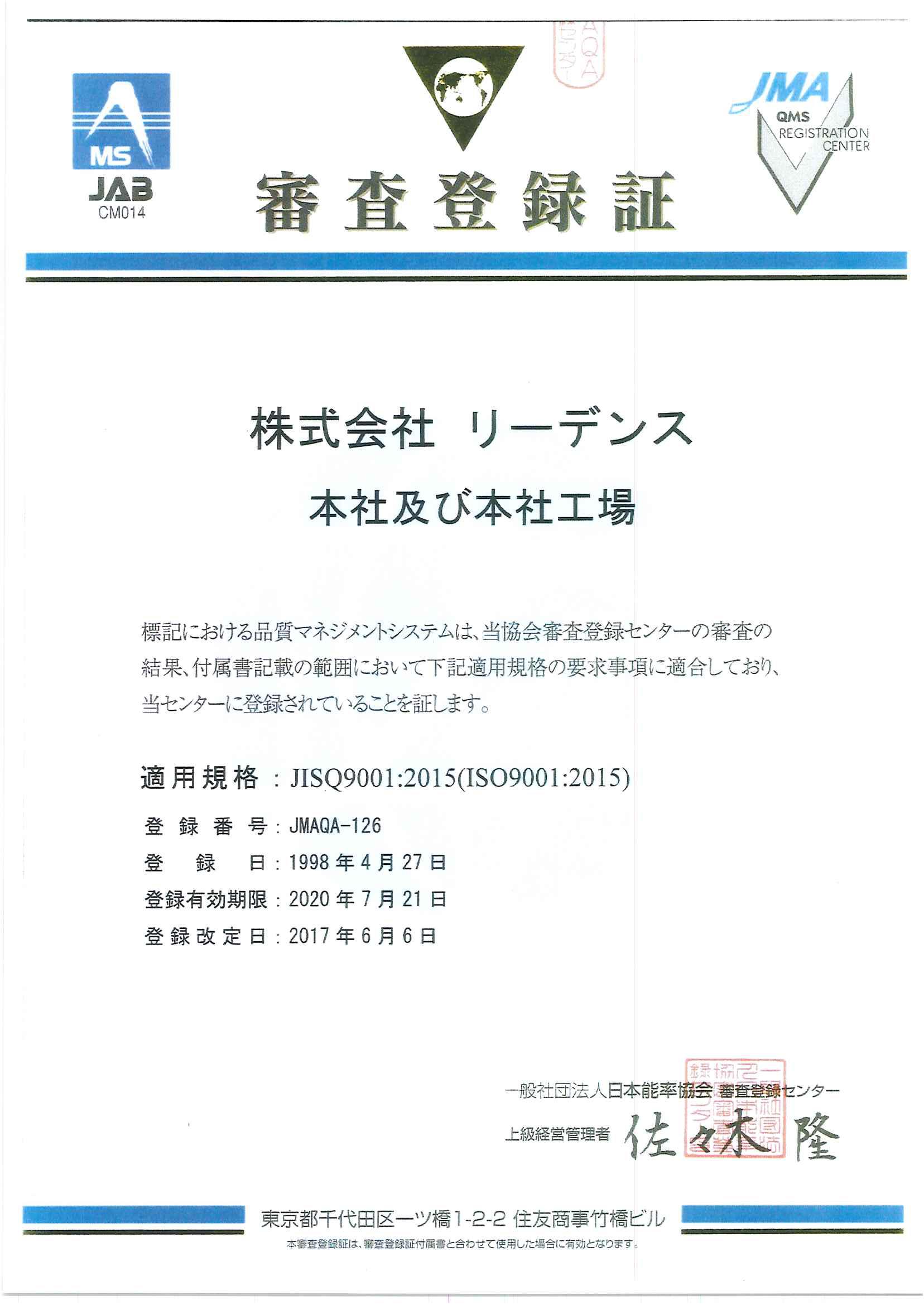 | 適用規格 | JISQ 9001: 2015/ISO9001: 2015 | ||
